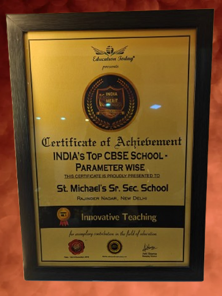 Award oneIt was a moment of great pride for the entire St. Michael's fraternity when in an award ceremony organised by the Education Today in Bengaluru, the school was ranked First in the category of providing 'Individual Attention to the Students' amongst many prestigious secondary schools in Delhi and NCR